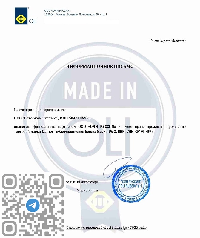 Компания Роторком является официальным дилером Оли и осуществляет продажу глубинных вибраторов для бетона в любые регионы России, их полную сервисную поддержку в гарантийный и послегарантийный период. Цена указана с НДС. Актуальность цены, возможные скидки и условия оплаты уточняйте в отделе продаж.