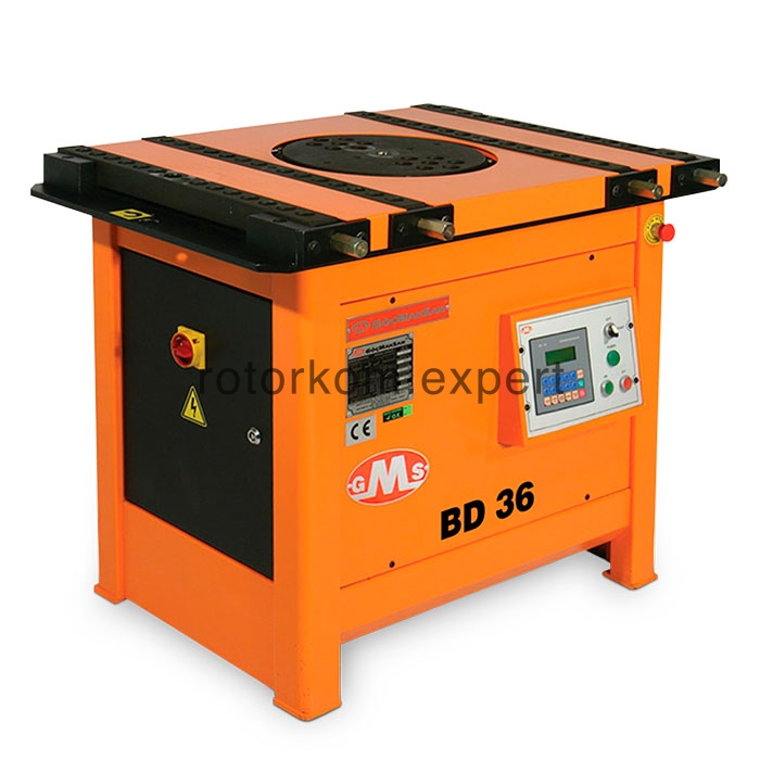 Электромеханический станок для гибки арматуры Gocmaksan GMS BD36 с цифровым управлением.Данный станок применяется для загибки с механической системой, регулировка углов осуществляется на контрольной панели с монитором LCD. На цифровой панели управления имеется 9 программ, по каждой программе можно внести 9 показателей углов, при этом имеется возможность подсчета количества стали, прошедшей процедуру загибки. Благодаря особенности поворота направо и налево, может производить двухстороннюю загибку. Для выполнения загибов различного назначения, к станку приспосабливается специальный аппарат. При помощи этих аппаратов можно производить спиральную и арматурную загибку. В связи с чем применяется на строительных площадках и предприятиях по обработке стали. Диаметр обрабатываемой арматуры от 7 до 26 мм. Двигатель «мотор-редуктор». Можно гнуть до 8 прутков одновременно. Устройство сгибания оснащено функцией реверса. Ручное и педальное управление. Агрегат позволяет изготавливать скобы, петли, закладные детали, т.е. осуществлять двойной изгиб.