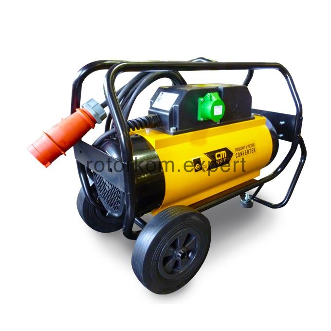 Электромеханический преобразователь для вибраторов Oli CMT 55 преобразовывает частоту и напряжение для высокочастотных вибраторов по бетону и обладает отличным соотношением цена/качество. Электромеханический преобразователь частоты и напряжения OLI одновременно поставляет питание нескольким вибраторам. Электропитание серии CMT - 400 Вольт. Электромеханические преобразователи OLI для глубинных вибраторов собраны на надежном рамном основании, достаточно легком для переноски одним человеком. Электромеханические преобразователи чрезвычайно надежны и практически не требуют технического обслуживания, что обеспечивается высоким качеством всех компонентов, отсутствием графитовых щеток и всесторонней защитой от ударов, толчков и попадания воды (класс защиты IP44). Хорошая система охлаждения и защита от перегрузки позволяют работать прибору в самых тяжелых условиях. В комплекте идет кабель: 5 метров.