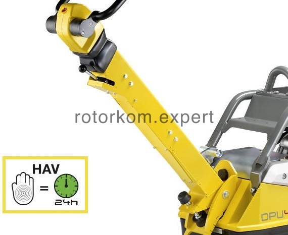 Wacker Neuson DPU 4045 Yeh дизельная виброплита реверсивная (масса 376 кг, сила 40 kN, дизель Yanmar) оснащена дизельным двигателем воздушного охлаждения с электростартером. Дизельные реверсивные виброплиты Wacker Neuson DPU 4045Yeh оснащены возбудителем с двумя сбалансированными эксцентриками, что повышает эффективность уплотнения на 10-12% на любых поверхностях. На виброплитах Wacker Neuson реализованы новые системы: защита двигателя за счет удлиненной заливной горловины топливного бака - снижается риск попадания частиц грязи во время заливки топлива, защита от повреждений во время транспортировки за счет автоматически складывающейся без люфта направляющей рукоятки, виброгаситель направляющей рукоятки и встроенный орган управления поперечным перемещением. Чрезвычайно надежная, даже в суровых условиях работы, опорная плита дизельных виброплит Wacker Neuson изготовлена из высокопрочного чугуна с шаровидным графитом GJS-700, что обеспечивает наилучшее сочетание высокой прочности на излом с низкой изнашиваемостью.