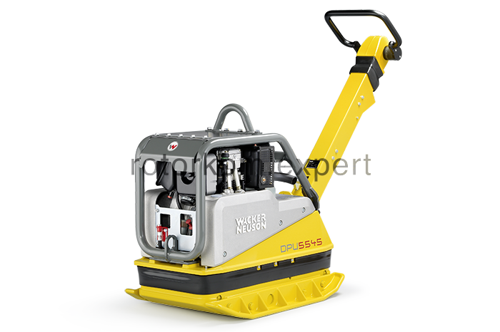 Wacker Neuson DPU 5545 Hehap дизельная виброплита реверсивная (масса 447 кг, сила 55 kN, дизель Hatz) оснащена дизельным двигателем воздушного охлаждения с электростартером, комплектуется расширительными пластинами плиты основания. Дизельные реверсивные виброплиты Wacker Neuson DPU 5545Hehap оснащены возбудителем с двумя сбалансированными эксцентриками, что повышает эффективность уплотнения на 10-12% на любых поверхностях. На виброплитах Wacker Neuson реализованы новые системы: защита двигателя за счет удлиненной заливной горловины топливного бака - снижается риск попадания частиц грязи во время заливки топлива, защита от повреждений во время транспортировки за счет автоматически складывающейся без люфта направляющей рукоятки, виброгаситель направляющей рукоятки и встроенный орган управления поперечным перемещением. Чрезвычайно надежная, даже в суровых условиях работы, опорная плита дизельных виброплит Wacker Neuson изготовлена из высокопрочного чугуна с шаровидным графитом GJS-700, что обеспечивает наилучшее сочетание высокой прочности на излом с низкой изнашиваемостью.